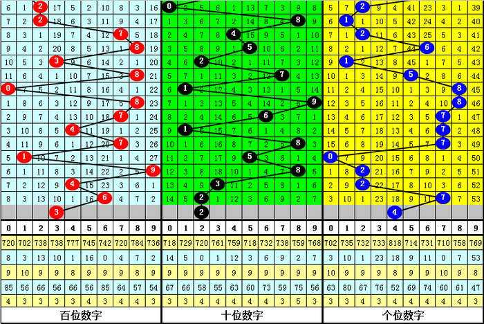 3、在以上0-9号码频次中,号码012路比为36:28:18,奇偶比为45:37,本期预测百位开特地数号码,参考号码3。