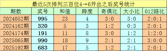 1、摆设三最近两期百位号码分袂开出4和6,历史上百位号码邻接两期分袂开出4和6的奖号出现了83期。前五期开出之后其下期奖号分袂为:995、320、191、990、683;