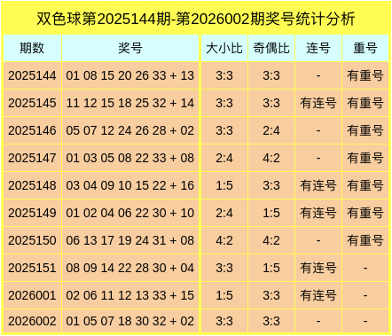 红球奇偶比为3:3,大小比为3:3,无重号,无连号,蓝球开出偶数02;